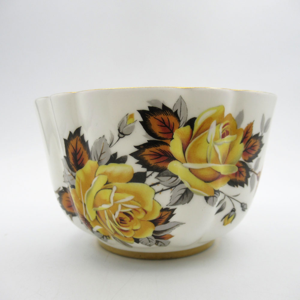 メーカー Royal Imperialロイヤルインペリアル 製造国 イギリス サイズ 約 高さ6cm、直径 約10.5cm 黄色いバラが咲き誇っている華やかな印象のシュガーボウルです。黄色いバラのみの柄は個人的に珍しいと思います。シュガーボウルとしてはもちろん、フルーツボウルや花生けにもお使いいただけるかと思います。 バックスタンプにはロイヤル・インぺリアルとありますが詳しい情報がないブランドです。 バックスタンプの特徴がリッジウェイに似ているのでおそらくリッジウェイグループのひとつではないかと思われます(確証はありません)。 制作時に出来た黒粒がございますが、ワレ欠けヒビののない美品です。 ※アンティークにつき、上記の他にも経年や輸送にともなう僅かなスレ・汚れは存在する可能性がございます。 ※新品とは異なることをご理解の上、充分にご検討頂きましてからご購入下さい。 ※アンティーク品の返品はご容赦頂いておりますので、ご注意下さい。 >> その他のポット・ジャグなど一覧 アンティーク全商品を見る