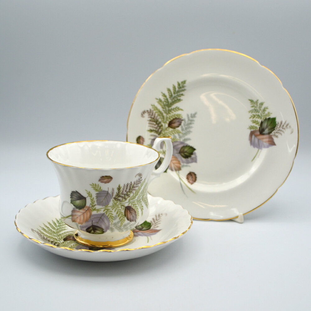 メーカー Royal Imperial ロイヤルインペリアル 製造国 イギリス サイズ カップ:約 高さ6.9cm×直径8.3cmソーサー:約 直径14cmプレート:約 直径15.8cm 人気のあるリーフ柄のボタニカルなトリオです。ヴィンテージ感はあまりありませんがデザインが素敵なので買い付けました。 バックスタンプにはロイヤル・インぺリアルとありますが詳しい情報がないブランドです。バックスタンプの特徴がリッジウェイに似ているのでおそらくリッジウェイグループのひとつではないかと思われます(確証はありません)。 ワレ・カケなしの美品です。カップの表面に焼成の時にできた粒や気泡がございます。ハンドルに少々擦れがある程度で金彩の状態も良好です。 ※新品とは異なることをご理解の上、充分にご検討頂きましてからご購入下さい。 ※アンティーク品の返品はご容赦頂いておりますので、ご注意下さい。 >> その他のティーカップ&ソーサーを見る アンティーク全商品を見る
