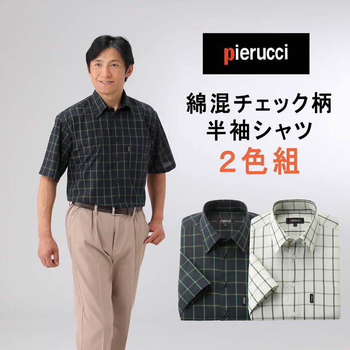 Pierucci 綿混チェック柄半袖シャツ2色組 同サイズ2枚セット ピエルッチ M L LL シニアファッション メンズ 紳士 誕生日プレゼント 男性 父 祖父 ギフト父の日ギフト/敬老の日 ギフト