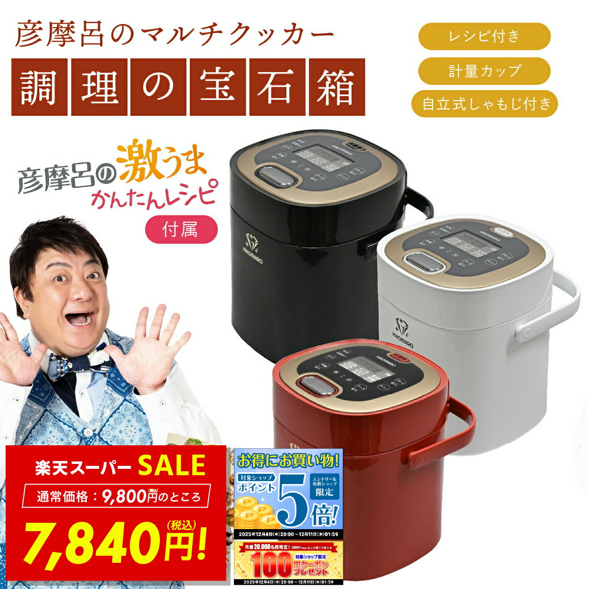 【SS★セール20%OFF!! 〜12/11 1:59】彦摩呂のマルチクッカー 調理の宝石箱 2.5合炊き 監修レシピブック付き 多機能炊飯器 マルチライスクッカー 炊飯ジャー しゃもじ 計量カップ 付き MC-107HK/MC-107HR/MC-107HW コンパクト 調理器 p10