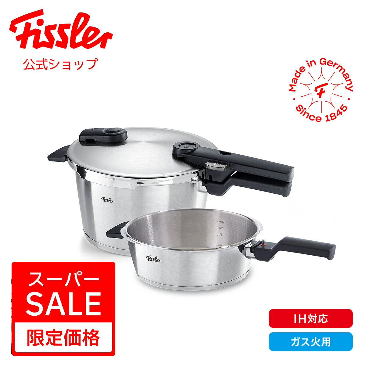 【スーパーセール 限定価格】【公式】 フィスラー 圧力鍋 ビタクイック プレミアム セット (4.5L+スキレット2.5L) IH対応・ガス火対応 レシピブック付き 10年保証 Fissler メーカー公式 ドイツ製 ステンレス 2段階圧力設定 高圧 低圧 鍋 602-410-11-000