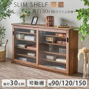 【スーパーsale クーポン配布中11日01:59まで】 シェルフ 奥行30cm スリム おしゃれ 引き戸シェルフ ガラス戸 天然木 棚 可動棚 北欧 木製 収納 インテリア 幅90cm 幅120cm 幅150cm 高さ85cm 見せる収納 ラック リビング収納 おすすめ 大容量収納 高級 収納ボックス