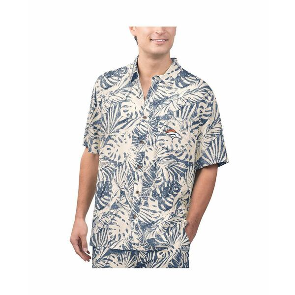 マルガリータビル メンズ シャツ トップス Men's Tan Denver Broncos Sand Washed Monstera Print Party Button-Up Shirt Cream