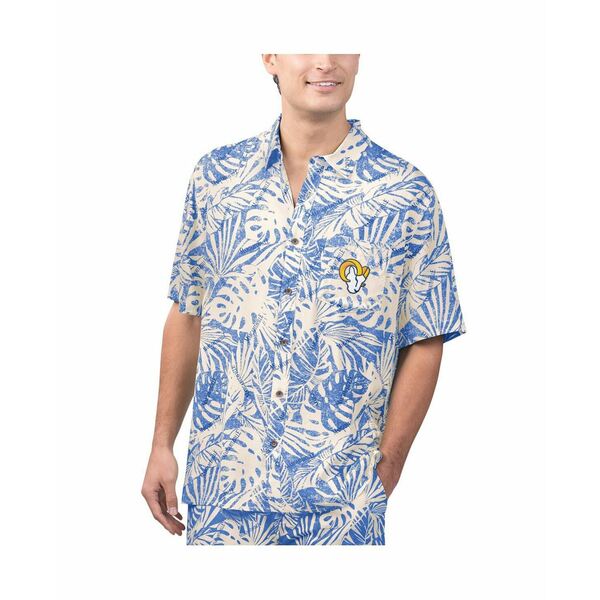 マルガリータビル メンズ シャツ トップス Men's Tan Los Angeles Rams Sand Washed Monstera Print Party Button-Up Shirt Cream