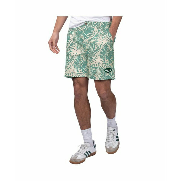 マルガリータビル メンズ カジュアルパンツ ボトムス Men's Green New York Jets Sandwashed Monstera Print Amphib Shorts Forest