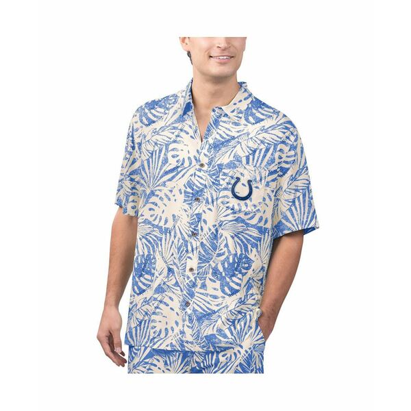 マルガリータビル メンズ シャツ トップス Men's Tan Indianapolis Colts Sand Washed Monstera Print Party Button-Up Shirt Royal