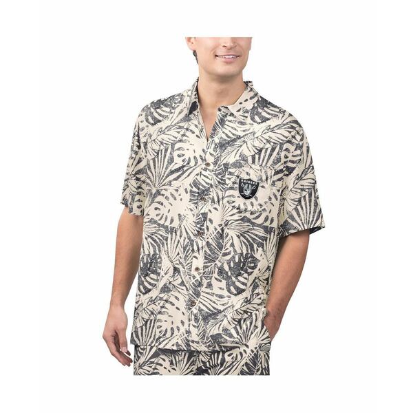 マルガリータビル メンズ シャツ トップス Men's Tan Las Vegas Raiders Sand Washed Monstera Print Party Button-Up Shirt Tan