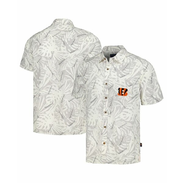 マルガリータビル メンズ シャツ トップス Men's Cream Cincinnati Bengals Sand Washed Monstera Print Party Button-Up Shirt Cream