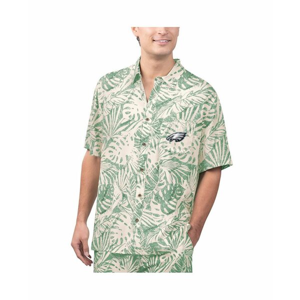 マルガリータビル メンズ シャツ トップス Men's Tan Philadelphia Eagles Sand Washed Monstera Print Party Button-Up Shirt Tan