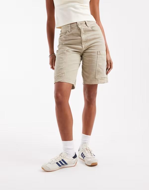 エイソス レディース ボトムス ハーフパンツ・ショーツ ショートパンツ ASOS DESIGN laundered longline utility shorts in washed sand Washed sand サンド
