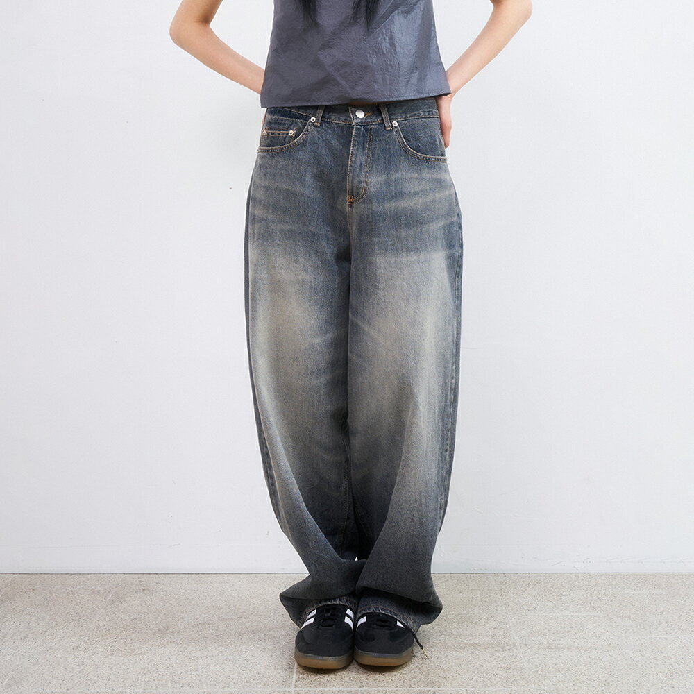 【送料無料】ラウコハウス【Raucohouse】Cat sand washed balloon wide denim pants / キャットサンドウォッシュ加工バルーンワイドデニムパンツ【公式ショップ】