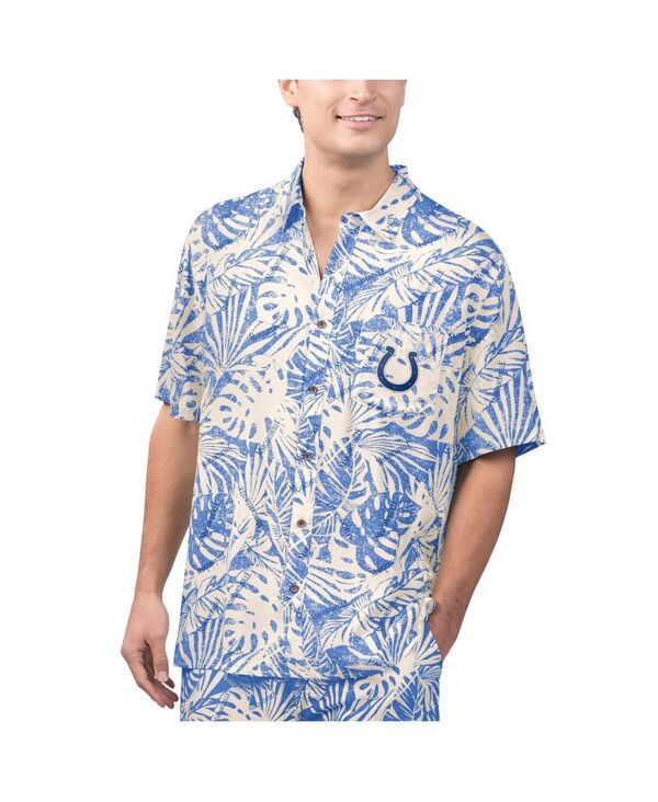 マルガリータビル メンズ シャツ トップス Men's Tan Indianapolis Colts Sand Washed Monstera Print Party Button-Up Shirt Royal