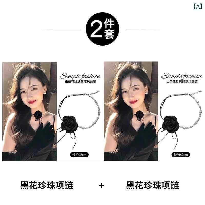ネック ストラップ アクセサリー 女の子用 ローズ ネックレス チョーカー ネック フラワー ブラック フラワーカラー ストラップ 椿 アクセサリー