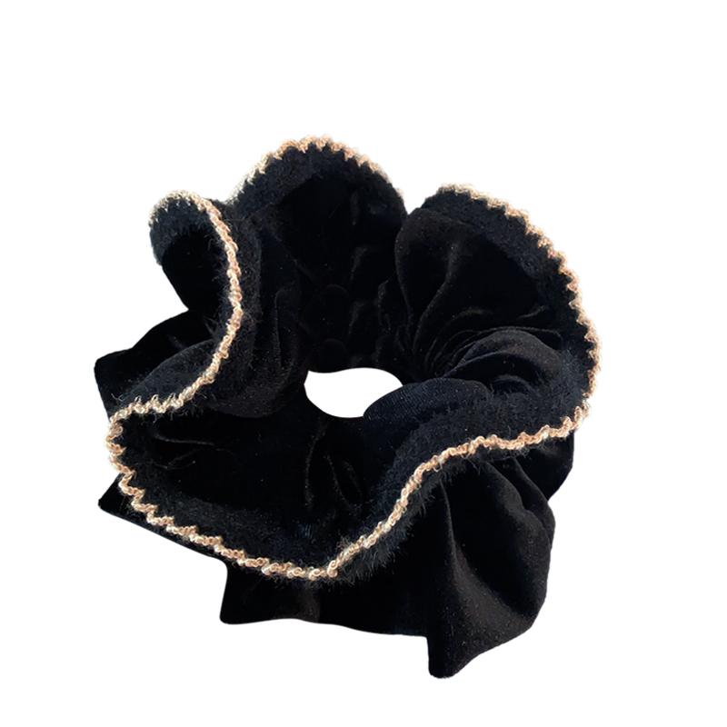 シュシュ 大人可愛い ヘアゴム レディース ブラック ベルベット ダブル レイヤー 大きめ 上品 秋冬 ヘアアクセサリー 髪留め