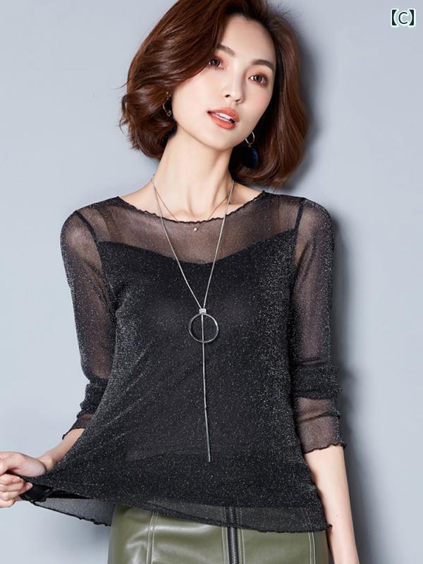 レディース シャツ レース ハーフ タートルネック レース レイヤリング シャツ レディース 2025 春 明るい シルク メッシュ 長袖 Tシャツ スモール トップ