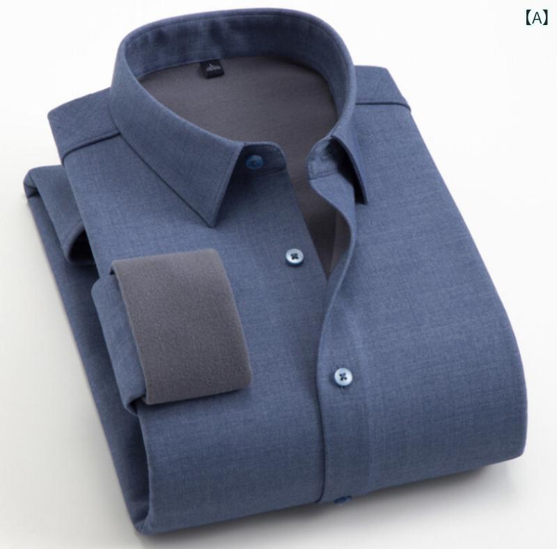 シャツ 男性用 ウール混紡 あったか裏起毛 厚手 ビジネス カジュアル トップス 紳士服 秋冬 無地 ブルー グレー グリーン