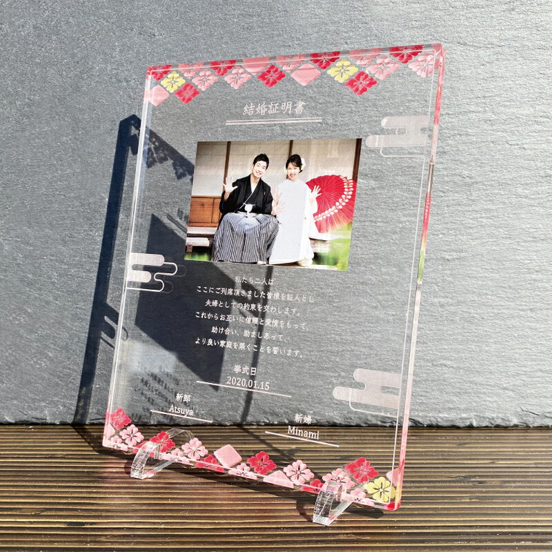 【写真入り 結婚証明書 祝い 大 】 ウェディング ウェルカムボード 結婚 結婚式 人前式 思い出 wedding ブライダル 記念日 結婚記念日 内祝い ギフト プレゼント 婚姻届 指輪 アクリル 和 和装 無垢 プレート インテリア おしゃれ お祝い 結婚祝い 送料無料 savoia サボイア