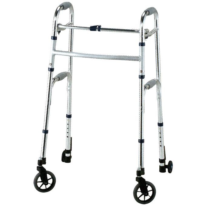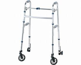 ※送料無料対象商品のみのご注文で送料無料になります。(沖縄・一部離島等は対象外となります)送料有料の商品と同時にご注文の場合は送料が発生いたします。ご了承ください。▼こちらの商品に関するご注意事項━━━━━━━━━━━━━北海道・沖縄・離島への配送は行っておりません。こちらの商品は代引きでの発送が出来ないため、お支払い方法の変更をお願いする場合がございます。お身体の状態や使用環境に合わせて、タイプをお選びいただけますスムーズに動きやすい5インチ大型ゴムキャスターとキャスター付ストッパーで方向転換もスムーズな4輪タイプ。○前輪:5インチ・大型ゴムスイングキャスター○後輪:3インチ・プラスチックキャスター付ストッパー○スムーズ歩行○室内・屋外両用タイプ○グリップの高さ:2.5cmずつ5段階調節可能○コンパクト収納:薄型折りたたみ○グリップ:ドライバーで交換OK○ウォーカースイングキャスタータイプ1.前輪:360°回転するスイングキャスタースイングキャスターなので方向転換もスムーズです。2.後輪荷重がかかるとストッパーが作動します。※凹凸道や坂道などでは使用しないでください。※荷重をかけた状態(ストッパーが作動した状態)で歩行器を無理に動かさないでください。○仕様変更前輪フォーク部をご利用様や周囲にやさしい樹脂材に仕様変更しました!※固定型歩行器用の脚先パイプセットは付属されておりません。材質○本体:アルミ、センターシャフトのみスチール(シルバーマット塗装)○握り手:合成ゴム○前輪:大型ゴムタイヤ○後輪:プラスチックタイヤ○収納時サイズ:幅67.5×奥行12×高さ91.5cm○下段グリップ:50〜60cm○前輪:5インチ○後輪:3インチ