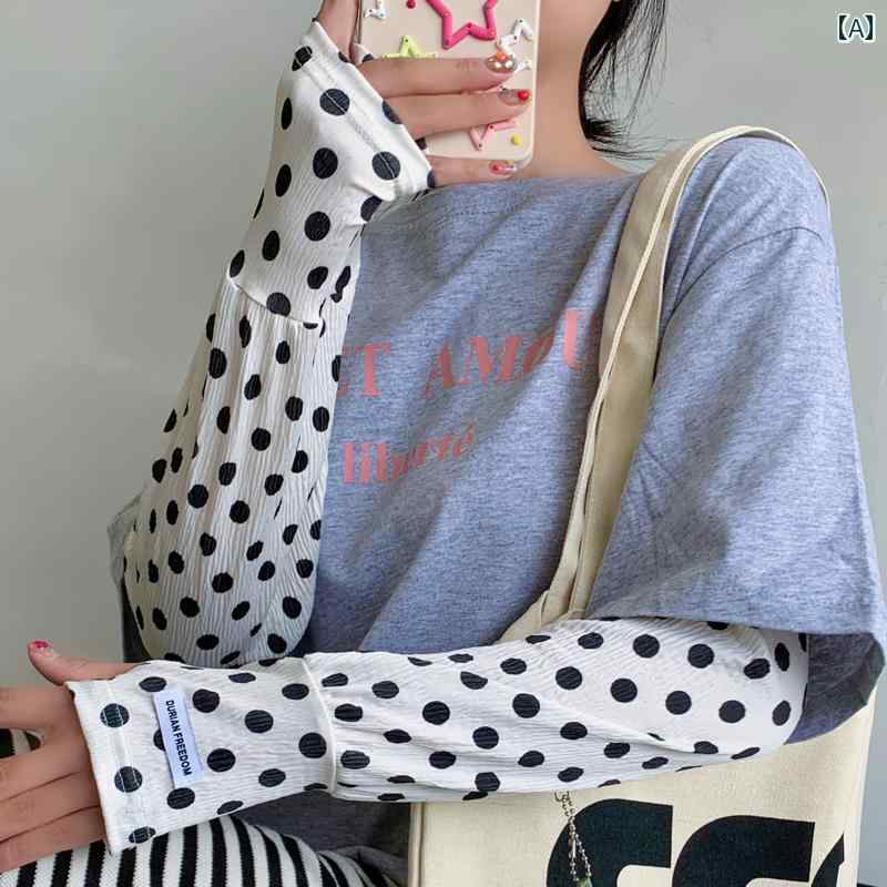 アームカバー レディース 可愛い 日焼け防止 付け袖 アウトドア 通勤 夏秋 サムホール 贈り物 ナイロン 水玉 花 フリーサイズ 白