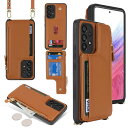 for Galaxy A53 5G SC-53C SCG15 ケース サムスン ギャラクシー A53 5G ショルダー リング付き 手帳型 上下開 CASE カバーSunYoo カード収納 横置き スタント肩がけ 首掛け 斜め掛け ファスナー ストラップ付き ショルダーケース ブラウン
