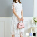 レースのワンピース レディース 白 黒 半袖 フォーマル 重ね着風 膝丈 ウエストゴム きれいめ 大人 春夏 ジョイントスペース ボウタイリボン 総レース ワンピース 半袖 Prima Scherrer 全3色|psc311-0911【1】