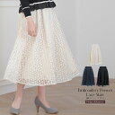 セレクト スカート フレア ロング レース 白 黒 ウエストゴム 春 かわいい コーデ きれいめ ジョイントスペース 刺繍フラワーレース スカート Prima Scherrer plus 全3色|psc651-0918【2】