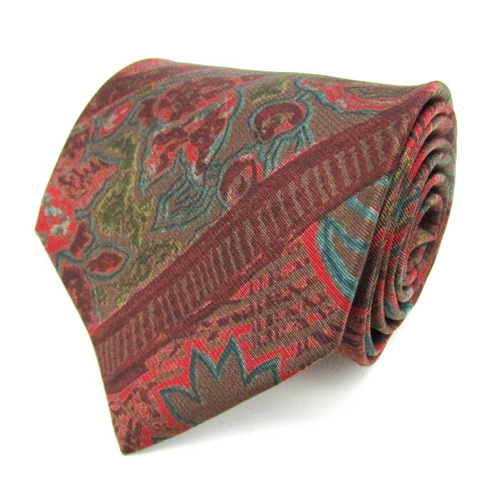 ジャンルイシェレル ブランドネクタイ 総柄 ペイズリー 幾何学模様 シルク PO メンズ ブラウン JEAN-LOUIS SCHERRER 【中古】