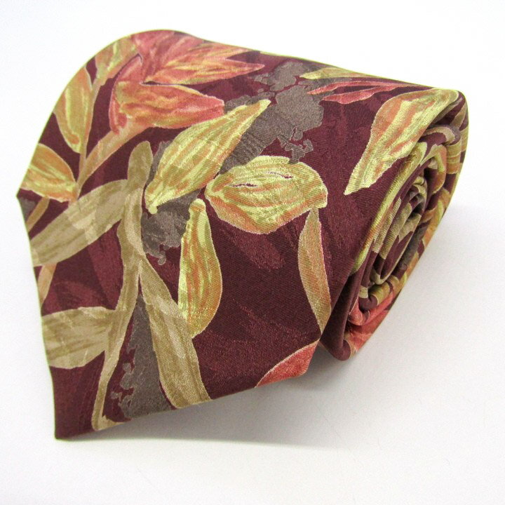ジャンルイシェレル ブランド ネクタイ 花柄 リーフ柄 シルク 未使用品タグ付 PO メンズ ワインレッド JEAN-LOUIS SCHERRER 【中古】