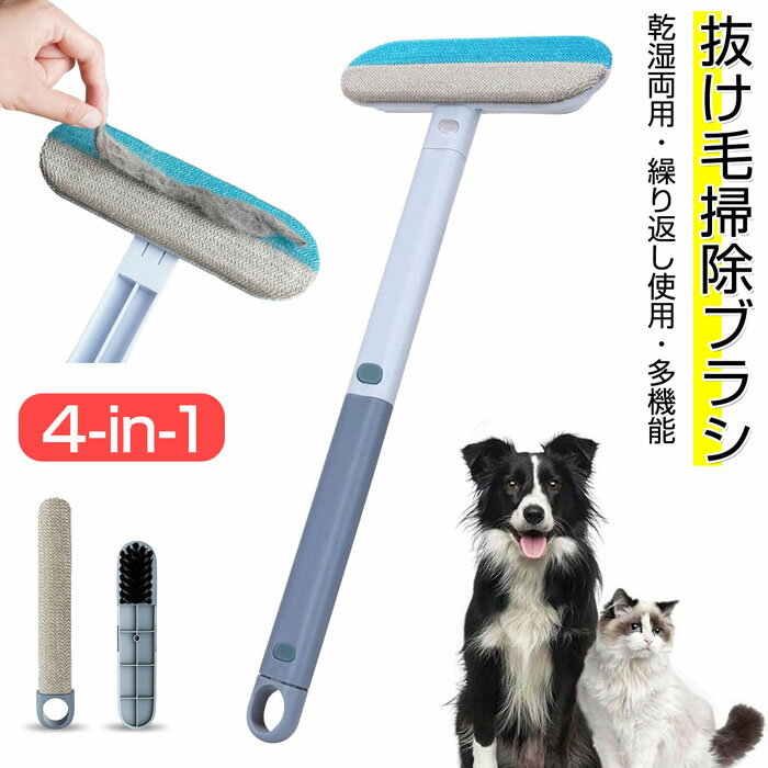 掃除ブラシ 猫の毛取り 多機能 静電気除去 猫 掃除ブラシ 毛取り 毛玉取り 抜け毛クリーナー ガラススクレーパー 猫 猫毛取りブラシ 犬用 窓掃除道具 乾湿両用 4in1 繰り返し使える 長さ調節可能 掃除ブラシ ペット毛対応