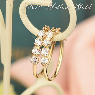 【30%OFF】スーパーキュービックジルコニア 10金 フープピアス両耳用10k K10 イエローゴールド scz スナップピアス 送料無料 レディース 女性用 誕生日プレゼント 妻 母 金属アレルギー 安心 結婚式 お呼ばれ アクセサリー 即納