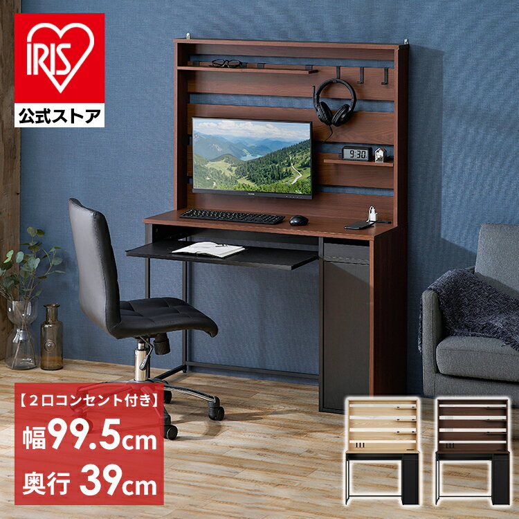 スペースを有効活用でき、狭いお部屋にもぴったりのデスク。場所をとらないサイズ感で、ワンルームや一人暮らしにもおすすめです。★お客様組立★●商品サイズ(cm)本体外寸:幅約99.5×奥行約39×高さ約143.9引出内寸:幅約16.1×奥行約25×高さ約3.8スライド棚内寸:幅約70.3×奥行約33.8×高さ約8●商品重量約28.7kg●耐荷重(約)天板:20kgスライド棚板:5kg可動棚板(1枚あたり):5kg底板:10kg引き出し:1kg壁掛け棚板(1枚あたり):1kgフック(1個あたり):1kgディスプレイ取付時:5kg以内 27インチまで全体:57kg●主要材質天板:合成樹脂化粧繊維板(メラミン樹脂)その他:プリント紙化粧パーティクルボード、プリント紙化粧繊維板パイプ部分:スチール(エポキシ樹脂塗装)●電源コード仕様定格電源 AC100V、定格周波数 50Hz/60Hz、消費電力合計 1500Wまで●組立の有無有※当商品はお取り寄せ品の為、在庫の確認及び商品のお届けまでお時間を頂く場合がございます。また、商品がメーカーにて完売となっていた場合、キャンセル又は注文内容の変更をお願いいたしております。予めご了承くださいますようお願いいたします。■こちらの商品はアイリスプラザがセレクトしたオススメ商品です。(検索用:パソコンデスク・デスク・パソコンラック・テレワーク・省スペース・シンプル・木製・勉強机・学習机・コンパクト・4967576679381・4967576679374) ※この商品は2梱包商品です。 最強翌日配送対象商品に関するご案内 最強翌日配送対象商品・対象地域に該当する場合は最強翌日配送マークがご注文カゴ近くに表示されます。 最強翌日配送可能なお支払方法は【クレジットカード、代金引換、全額ポイント支払い】のみとなります。 下記の場合は最強翌日配送対象外となります。 ●15点以上ご購入いただいた場合 ●時間指定がある場合 ●ご注文時備考欄にご記入がある場合 ●決済処理にお時間を頂戴する場合 ●郵便番号や住所に誤りがある場合 ●最強翌日配送対象外の商品とご一緒にご注文いただいた場合 ●お届け先住所文字数が40文字以上の場合お届け先が沖縄・離島の場合、お届け日時のご希望に沿えない場合がございます。予めご了承ください。 商品ページはこちら ▸ 商品ページはこちら ▸ 今ご覧のページです ▼雑草が生える前の今がチャンス!