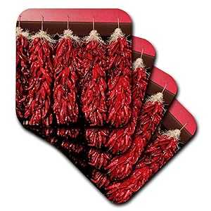 3dローズチリペッパーを天日で乾燥させたもの、ヴェラルデ、ニューメキシコ、米国。- ソフトコースター、4枚セット 3dRose Chili peppers drying in the sun, Velarde, New Mexico, USA. - Soft Coasters, set of 4