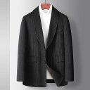 ジャケット メンズ 男性用 秋冬 スリムフィット ストライプ ウールダブルフェイス ポリエステル裏地 テーラードカラー シングルブレスト ブラック ビジネス カジュアル アウター 防風 形態安定 普段使い 通勤