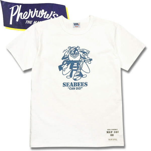 PHERROW'S(フェローズ)プリント半袖Tシャツ【22S-PMT6・SEABEES】ホワイト