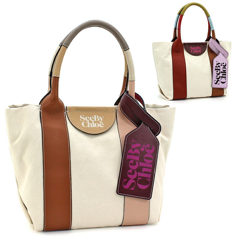 シーバイクロエ トートバッグ ハンドバッグ レティシアスモールトート LAETIZIA SMALL TOTE CHS22USB62B04 コットンキャンバス レザーハンドル カラーブロック 台形トート レザータグ カードケース付き レディース 【並行輸入品】