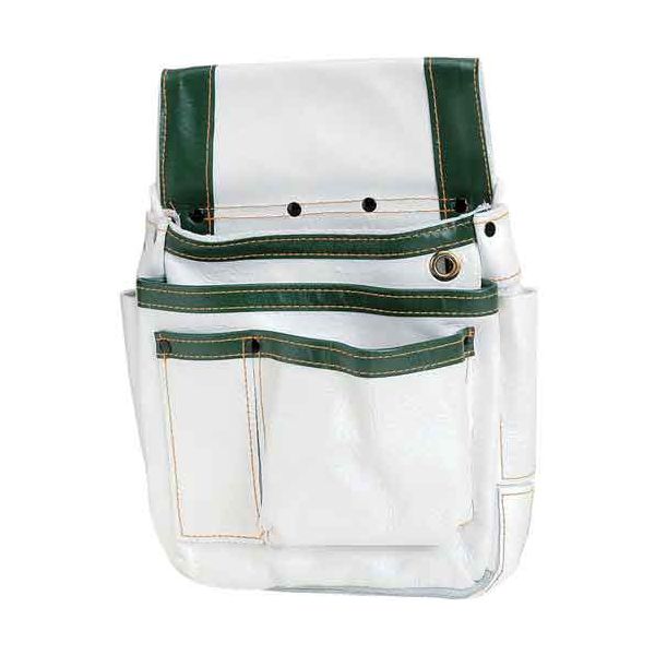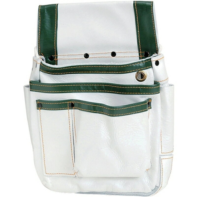 【用途】釘、金槌などの収納。【機能・特徴】雨・汚れに強いエバースキン革で抜群の耐久性です。ヨレ防止ボード補強付です。立体加工により出し入れ簡単です。【仕様】●サイズ:(縦)約320x(幅)約270mm。●60mm幅ベルトまで対応。●カラー:パールホワイト。【材質】●本体:エバースキン。【商品サイズ】幅260×高さ330×奥行30mm 重量520g【注意事項ほか】●濡れたまま使用されますと革の伸びやリベット類の緩みの原因となります。●バックル、リベットなど金属類の変形、緩み及び糸のほつれなど異常のまま使用しないでください。