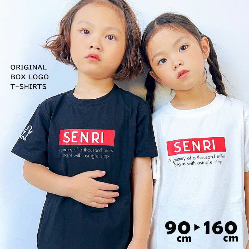 tシャツ キッズ 子供服 センリ ボックスロゴ 子ども ロゴTシャツ ロゴT プチプラ 入学準備 男の子 女の子 半袖 ティーシャツ トップス コットン 綿 ジュニア 兄弟 姉妹 お揃い シンプル カジュアル ユニセックス 入園 入学 プリント 無地 新学期 送料無料 senri01