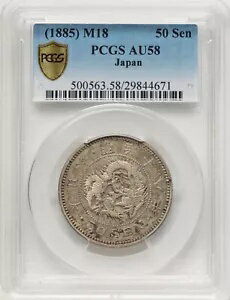 明治18年(1885年)50銭銀貨、PCGS認定AU58、大阪造幣局