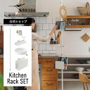 【公式】DRAW A LINE ドローアライン Kitchen Rack SET White 200~275cm 縦専用 ホワイト SET-D-BOOK-KCR-WH 突っ張り棒 フックA ブックスタンド トレイ ブックラック セット