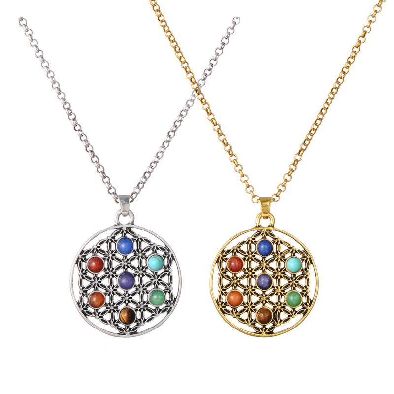 ネックレス レディース 多色 セブンチャクラストーン ペンダント ロングネックレス ヨガ ヒーリング ペンデュラム 欧米風 アンティークシルバー 合金 電気メッキ加工