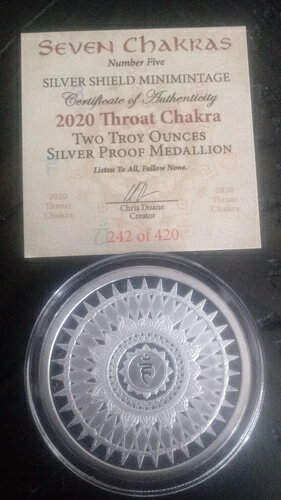 シルバーシールド 2オンス セブンチャクラ 2020 スロートチャクラ プルーフ COA付き