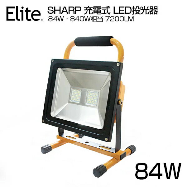 【即納】1年保証 LED 充電式 ポータブル 投光器 7200LM 84W・840W相当 LED投光器 360度調整 SHARP LED作業灯 バッテリー搭載 軽量 防水 スタンド 充電式ライト 看板灯 集魚灯 作業灯 駐車場灯 屋外 照明 昼光色 LED投光機 コードレス投光器/100w