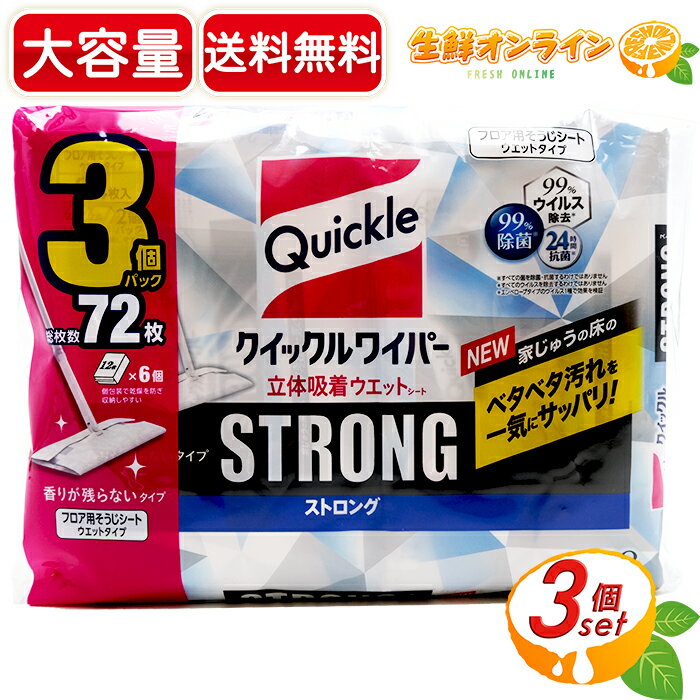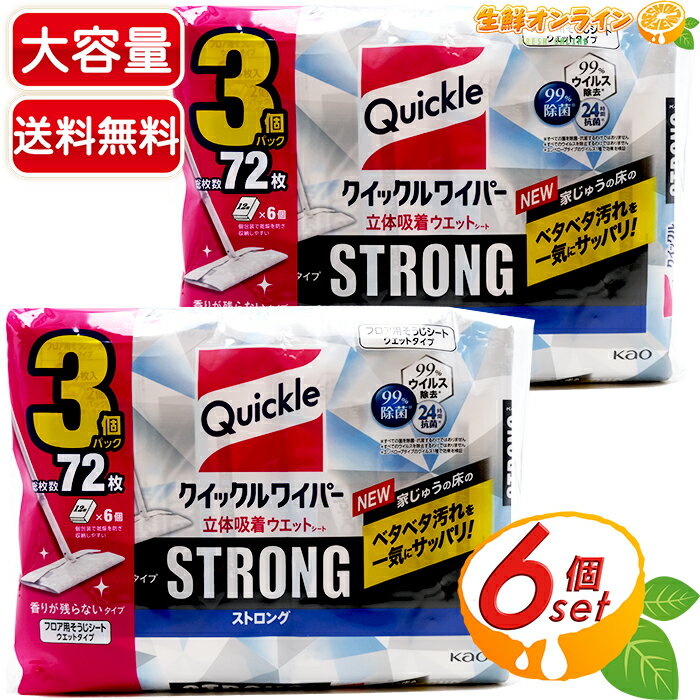 クイックルワイパー ウェットシート ストロング 立体吸着 大容量 72枚入(12枚×6袋) ウイルス除去 消臭 除菌 フロア掃除 ウエットタイプ 花王 Quickle Wiper Wet Sheet Strong COSTCO コストコ