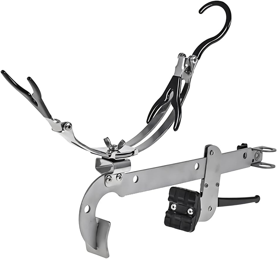 万能竿受け(竿置き)です。取り付け幅21 cmまで。釣り竿と接触する竿受け両端の底部の間隔27 cm。へら竿はもちろん、リールが付いているチョイ投げ釣り竿にも楽に対応します。 竿受け部:角度が上下それぞれ45°無段階調整可能、そして360°自由に調整可能。竿受けの先端がY形とホック形2パータン自在に変換可能。釣り竿の種類、取り付けの場所(角度)、個人の習慣によって、適切な竿受けの先端を選択し、より快適な釣り実現することができます。 クランプ部:前グランプアームの端部が表面⇒曲面⇒表面のデザインを採用されため、丸いパイプにも平面物にも安定的に取り付け可能。後グランプアームの端部の滑り止めゴムが円形から四角の形に改良し、滑り止め効果がもっと強くなりました。 従来の万力式の竿受けがグランプネジを何十回グルグル回って竿置きを取り付けると比べ、万能竿受け(竿置き)がロッキングバンドルを上げる、また下げるだけで楽で竿受けを取り付け、取り外しことが実現。 万能竿受け(竿置き)は船、カヤック、堤防、海釣り公園の手すりパイプ、安全柵など、どこにも簡単に取り付け可能。釣り竿を使うことによって、両手を釣り竿から解放、疲れを軽減、そして魚のアタリも見やすくなります。非常に使い勝手、便利な釣具です。