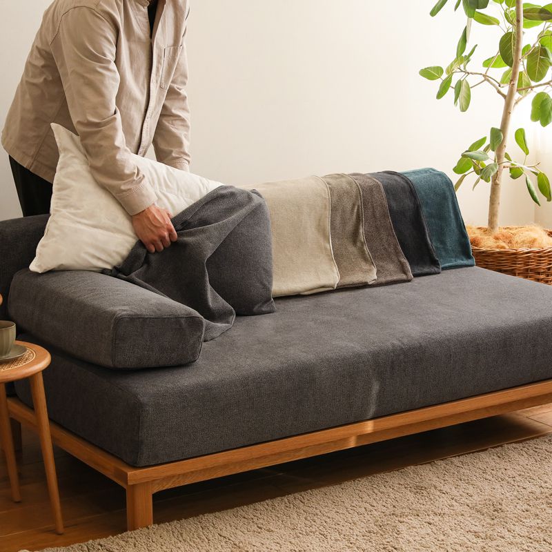 SPECスペック カラー ダークベージュ グレー ベージュ ライトブラウン ブルー ブラック 素材 ポリエステル 100% 備考 背、座面カバー脱着式(手洗い、ドライクリーニング可能)背クッションカバー2点、座クッションカバー1点、本体カバー1点、肘クッションカバー1点の5点セットです。ソファーフレーム本体は含まれませんので、ご注意くださいませ。 受注生産品のため、商品ご注文完了後の 「カラー・タイプ変更」「キャンセル」は受付できかねます。 こちらの商品は、サイズ展開がございます。下記リンクより、他サイズのページをご覧いただけます。 1人掛けタイプ用はこちら ロングタイプ用はこちら ワイドタイプ用は現在のページです。 オットマンタイプ用はこちら カテゴリー:2人掛けソファー毎日肌に触れるものだから「替えカバー」を。 清潔感をキープして、より快適に。毎日ソファーを使用していると、摩擦によって生地の劣化が進んでしまったり、ペットや小さなお子様のご使用で、破けたり汚れが付いたりすることもありますよね。そんな時のために「SIEVE rect unit sofa」シリーズ専用のソファーカバーをご用意しました。替えのカバーがあることで定期的にカバーを付け替えられるので、摩擦による生地表面の劣化を軽減。カバーを交互に休ませながら使うと、本体を買い替える必要なく、ソファーをより長くお使いいただけます。rect unit sofaはフルカバーリング仕様。違う色のカバーに変えると、お部屋はまた違った雰囲気に。何色か持っておくと、季節や気分に合わせてコーディネートを楽しめるのでおすすめです。カバーは手洗いとドライクリーニングが可能ですので、飲み物や食べ物をうっかりこぼしてしまっても安心。何色か持っておくと、クリーニング中の洗い替え用としても便利です。ソファーは毎日のように使うので、知らず知らずのうちに汚れてきてしまうもの。定期的に洗濯して、清潔・快適に過ごしましょう。季節ごとや、買い替えにも。 全6色のカラーバリエーションカラーはグレー、ベージュ、ダークベージュ、ライトブラウン、ブルー、ブラックの6色展開。rect特有の落ち着きのある上品な色合いは、テイストを選ばず幅広いコーディネートに合わせることができます。周囲の色を引き立てる主張しすぎないグレーは、とても控えめな上品さ。どんなテイストにも違和感なく溶け込みます。優しい色合いのベージュは、どんな空間にも馴染みやすく、お部屋を明るい印象に。ヴィンテージテイストだけではなく、爽やかなナチュラルテイストにも合わせやすいので、女性にとても人気のカラーです。ベージュより少し明るさを落としたダークベージュカラー。ナチュラルな空間にもビターな印象をプラスしてくれるので、落ち着いた大人っぽい雰囲気のお部屋づくりに最適なカラーです。ライトブラウンはお部屋に温かみをプラスしてくれるカラー。ヴィンテージテイストのお部屋と相性がよく、落ち着いたくつろぎ空間を演出してくれます。トーンを抑えた独特な色合いが特徴的なブルーは、空間に爽やかさをプラス。お部屋のアクセントとしてコーディネートすることで、メリハリのある洗練された空間に仕上がります。清潔感のあるブラックは、シックな空間にも、ナチュラルな空間にもしっくりと馴染み、お部屋をスタイリッシュな印象に。ソファーのカラーによって空間の印象はガラリと変わります。お部屋のテイストに合わせてコーディネートをお楽しみください。 こちらの商品は、サンプル請求が可能です。お問い合わせフォームに【商品名/サンプル請求希望】とご記載ください。折り返しご連絡いたします。 SHOPPING CARTショッピングカート