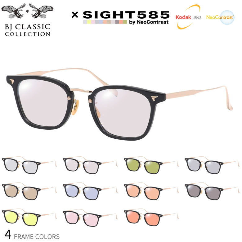 BJクラシックコレクション COM-554 GT 49 サングラス SIGHT585 サイト585 サングラス 度付き KODAK NEOCONTRAST コダック ネオコントラスト メガネ テレワーク 夜間運転 UVカット 紫外線カット BJ CLASSIC COLLECTION [OS]