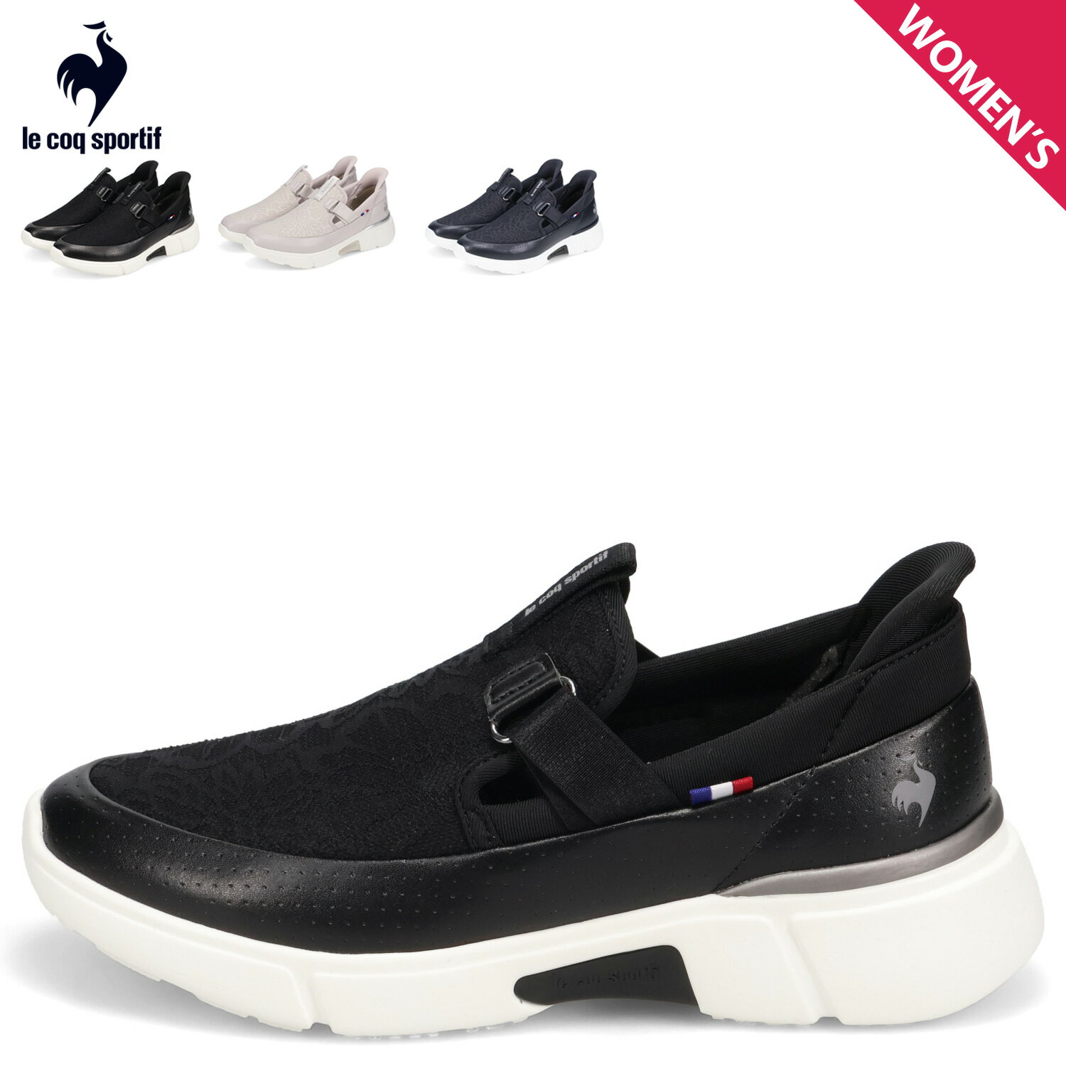 【最大1000円OFFクーポン発行中 11/27 09:59まで!】 ルコック スポルティフ le coq sportif スニーカー スリッポン LCS ロワール SP LC SI レディース 軽量 LCS LOIRE SP LC SI ブラック グレー ネイビー 黒 LU5SSN23LZ