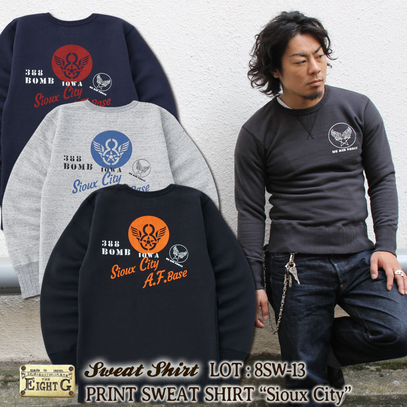 スウェット メンズ アメカジ 長袖 プリント 綿100 プルオーバー スエット トレーナー ミリタリー 防寒 起毛 国産 日本製 おしゃれ 大人 エイトジー EIGHT-G SIOUX CITY 8SW-13