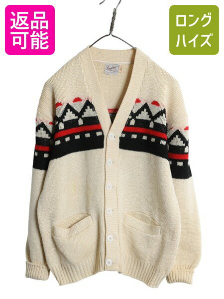 商品情報商品番号k-nvd09y25n04商品名50s Kandahar デザイン ニット カーディガン メンズ M 古着 ヴィンテージ ウール セーター ポケット付き 前開き 羽織り 重ね着 ナチュラル商品説明アメリカで購入したUSED商品です。 50年代のヴィンテージ Kandahar By Bert Charon N.Yのニットカーディガンです。 モヘアニット、カーディガン セーターなど 様々な上質な商品で見かける 古着好きにはお馴染みのブランドです。 素材は、100% ALL VIRGIN WOOL ヴィンテージ独特の上質なミドルゲージ チクチク感のない、ストレスなく着て頂ける 保温性の高い着心地抜群の素材が使用されています。 フロントは、6ボタン 両サイドに嬉しいポケット付き 合わせやすい、人気のナチュラルベース ブラック x レッド で構成された ヴィンテージならではの雰囲気の良い柄入り 近年アメリカでもまったく見かけなくなった コーディネートのアクセントになるグッドデザイン これだけで様になる 長く愛用して頂ける商品です。 ブランド情報カラーナチュラル ベース | 柄入り生産国 状態説明コンディション左袖に小さなリペア、フロント右サイドに薄ヨゴレ、 バック中央辺りに色移りがあります。 いづれも、普段古着慣れしている方なら まったく気にならない程度です(写真参照) それ以外は、多少の使用感がある程度で 特に表記するところの無い非常に良い状態です。 サイズ表記サイズ44 メンズ M 程(実寸をご確認ください)着丈57cm【バック襟付け根からの計測】身幅53cm【脇下で計測】肩幅48cm袖丈(肩から)50cm 【袖を折り返した状態で計測】袖丈(脇下から)36cm 【袖を折り返した状態で計測】補足(計測は全て平置きでの計測になります。多少の誤差はご了承下さい) サイズの測り方についてはこちら 当店について 当店の商品は、国内の買い取りなどは行なわず、私たちが直接アメリカから買い付けてきた新品 デッドストック 等の US古着、インポート オンリーの商品です。靴 鞄 帽子 ファッション 小物 などの全身コーディネートできる物春服 夏服 春夏 秋冬、秋服、冬服 など様々な季節 オシャレ おしゃれ かわいい カワイイ かっこいい 流行 トレンド 旬 シンプル インパクト カジュアル フォーマルストリート 定番 人気 など様々なスタイルに対応できる商品特に アメリカン カジュアル ( アメカジ ) ストリートアウトドア ワーク ミリタリー と言った機能性 に優れ長く愛用できる物を幅広く取り揃えています。大切な人の 贈り物 ( ギフト )誕生日 母の日 父の日 敬老の日 クリスマス ハロウィン バレンタイン 就職祝い 入学祝い 進学祝い 結婚祝いにもお使い頂ける、心のこもった 1点物 もお探しいただけます。ひとつひとつ厳選した幅広いジャンルの商品お楽しみください。 注意事項商品について一見して分かる目立つヨゴレやダメージは商品画像や商品説明に記載はしていますが 着用に支障が無いと判断した物や裏側等の着用時見えない場所、古着慣れされている方 なら問題無い範囲内と判断したヨゴレ、小さなダメージの説明は省いている場合があります。 (その様な場合でもこちらの判断で良品、美品と記載している物もあります) 見えない場所や細かいヨゴレ、ダメージの気になる方はご購入前に必ずご相談下さい。 サイズについては多少の誤差はご了承願います。 撮影時の光や環境、ご使用のブラウザによって実際の色と異なる場合があります。 写真と商品説明文を確認して、少しでも気になる点があれば必ずご入札前にご質問下さい。在庫について掲載商品に関しましては、実店舗でも同時に販売しており在庫の有無が反映されいていないことがあります。自動返信メールと別に、在庫の有無をメールでご連絡差し上げます。 在庫がない場合は、キャンセルのメールを配信させて頂いておりますこと、予めご了承ください。営業時間についてAM10:00 ~ PM16:00 上記時間内でもお問い合わせにお答え出来ない場合もあります。 急遽お休みを頂く場合もございますので気になる点はお早めにご質問下さい。 前もってお休みをお知らせ出来る場合は自己紹介欄等に記載させて頂きますのでご確認下さい。