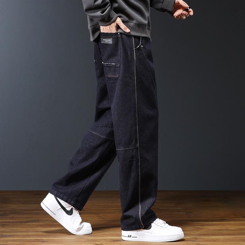 秋冬 コーデ メンズ 服 シンプル ファッション オシャレ 大人 かっこいい 大きいサイズ ストリート 紳士服 カラー ストレート ジーンズ ゆったり シンプル ワイド カジュアル ロング パンツ